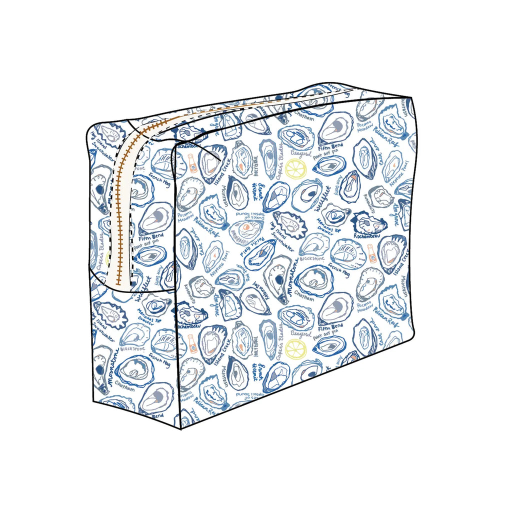 Introducing, the Oysters Large Travel Pouch! Including hand drawn doodles by our Founder Eliza Ferrel. Lined with a wipe-clean synthetic interior and finished with a gold zipper, this roomy pouch is perfect for weekends away, day trips to the beach, or even just to throw in the diaper bag.