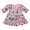 Sugarplum Dreams! Your little ballet lover will be ready to pirouette, leap and take a bow alongside everything she loves about the Nutcracker in our Girls Peachy Dress in Lavender Nutcracker. This swingy triple tiered silhouette features lavender velvet taping at the tiers a 3/4 puff sleeve sleeve and an invisible zipper at the back. Match back to Baby Sis in our Baby Girls Charlie Jumper.Â
