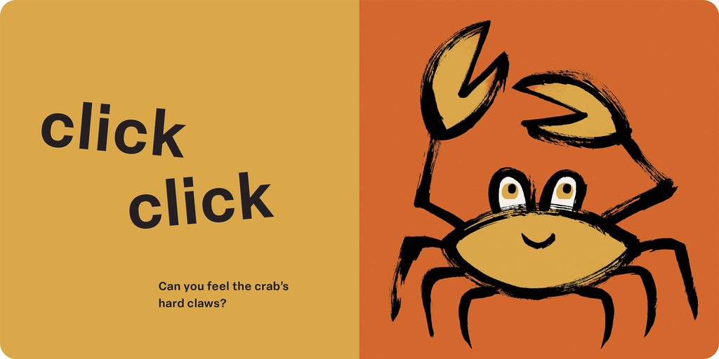 Touch and feel the ocean creatures in this stylish, design-led board book. Introducing textures and providing the child with a tactile reading experience, this book explores a dolphin, a starfish, an octopus, a penguin, and a crab. Beautifully produced, with contemporary artwork.