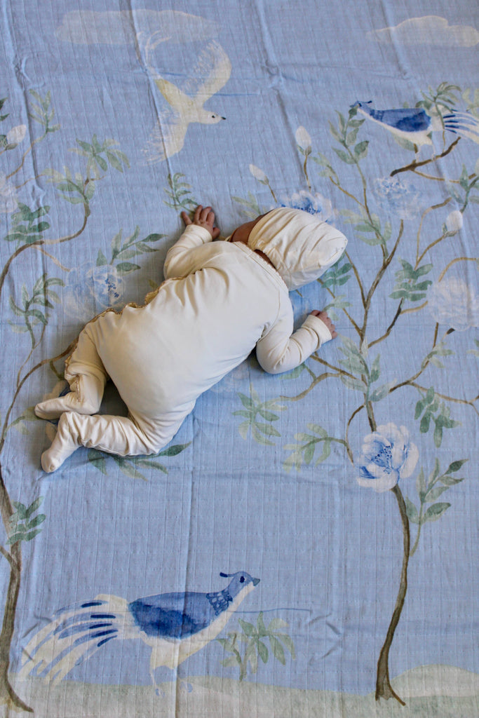 Wrap your little bundle of joy in the finest comfort with our muslin baby blankets. Crafted from the highest grade 100% organic cotton and featuring unique prints, these soft and breathable blankets are perfect for keeping your baby comfortable and cozy. Our baby blanket can be used in a variety of ways, including as a swaddle blanket, burp cloth, nursing cover, change mat, and stroller cover.