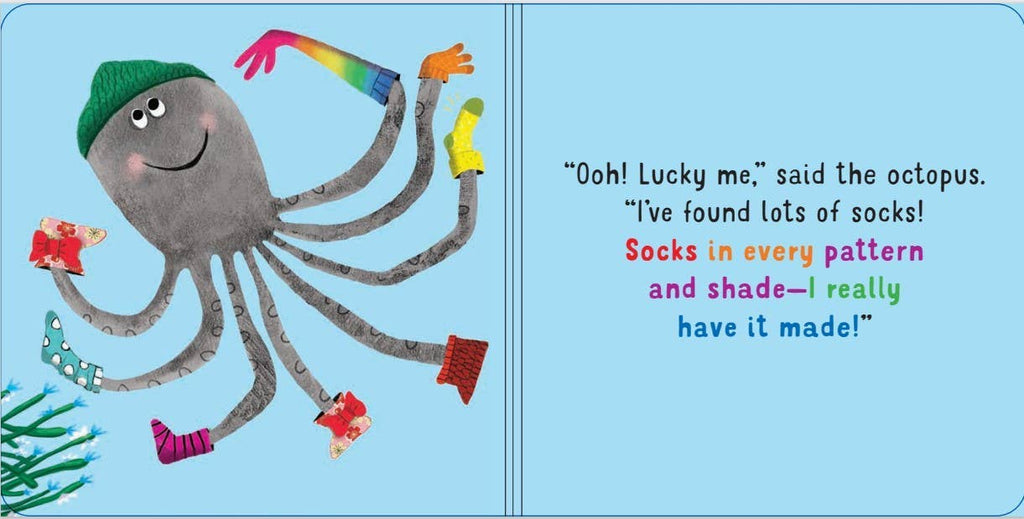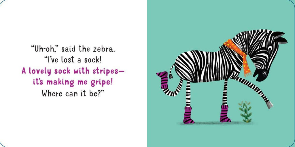 A colorful and amusing simple whodunit! Engaging, rhyming text tells about socks that have mysteriously disappeared: socks of all colors, shapes, and patterns. Just where could they have gone? Readers will squeal with delight when they find out!