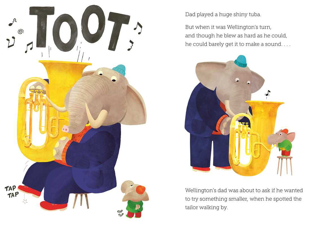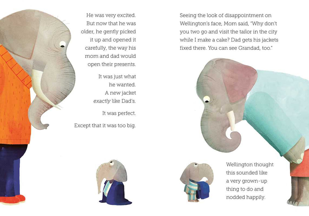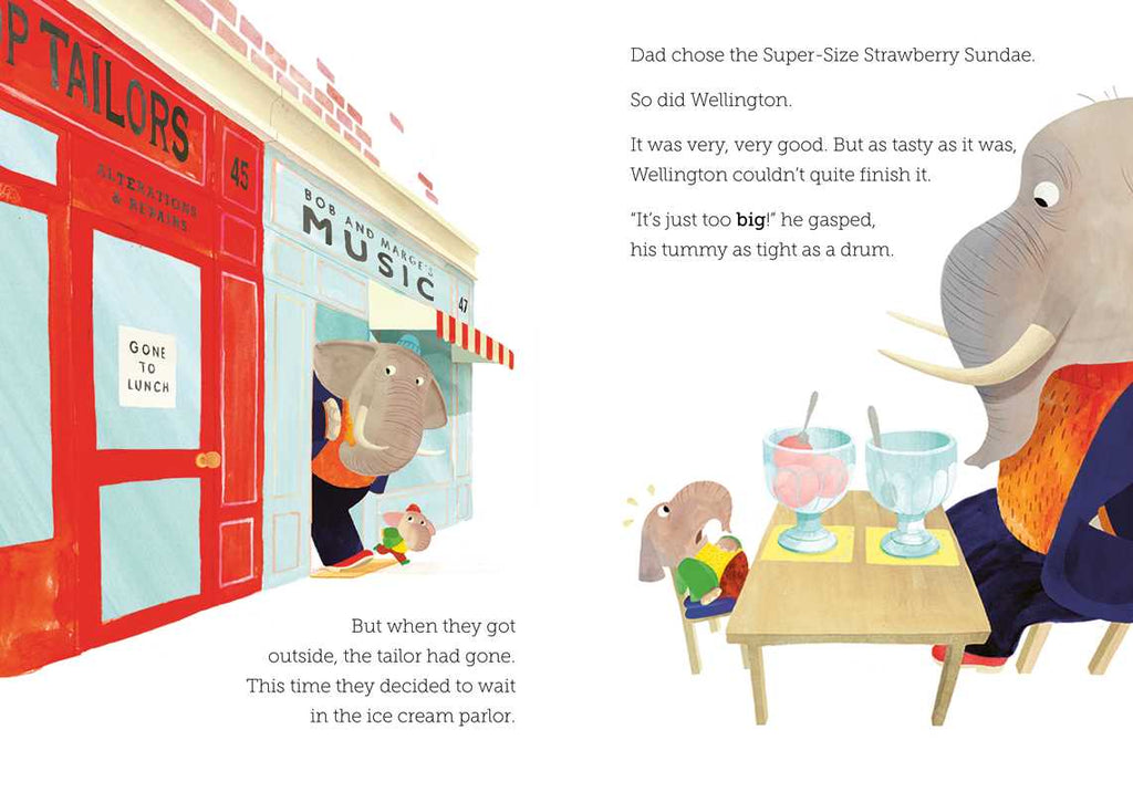 When Wellington is given a new jacket exactly like Dad's for his birthday, he's delighted! But his delight turns to disappointment when he tries it on and it's far too big. Even worse, what if it's not that the jacket is too big, but that he's too small? Luckily, Wellington's dad has a plan, and on an exciting day out that includes a ride on the bus, a super-size strawberry sundae, a toot on a tuba, and a visit to his granddad, Wellington learns that he's growing up exactly as fast as he should be—and just like his dad.