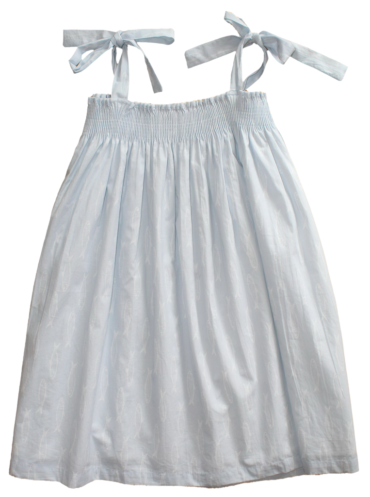 Smocked Dress in Blue Fish