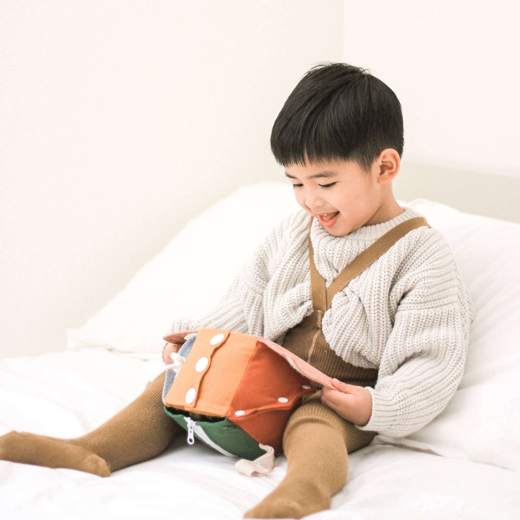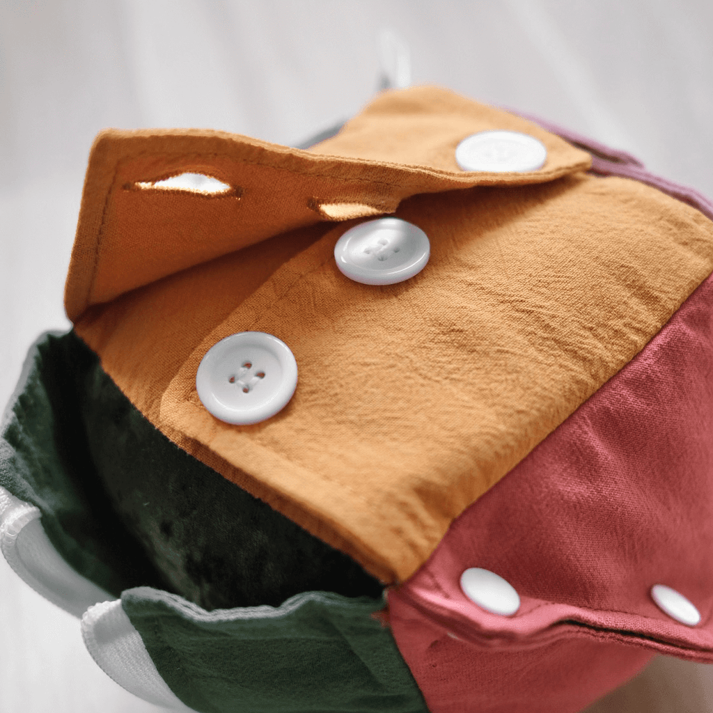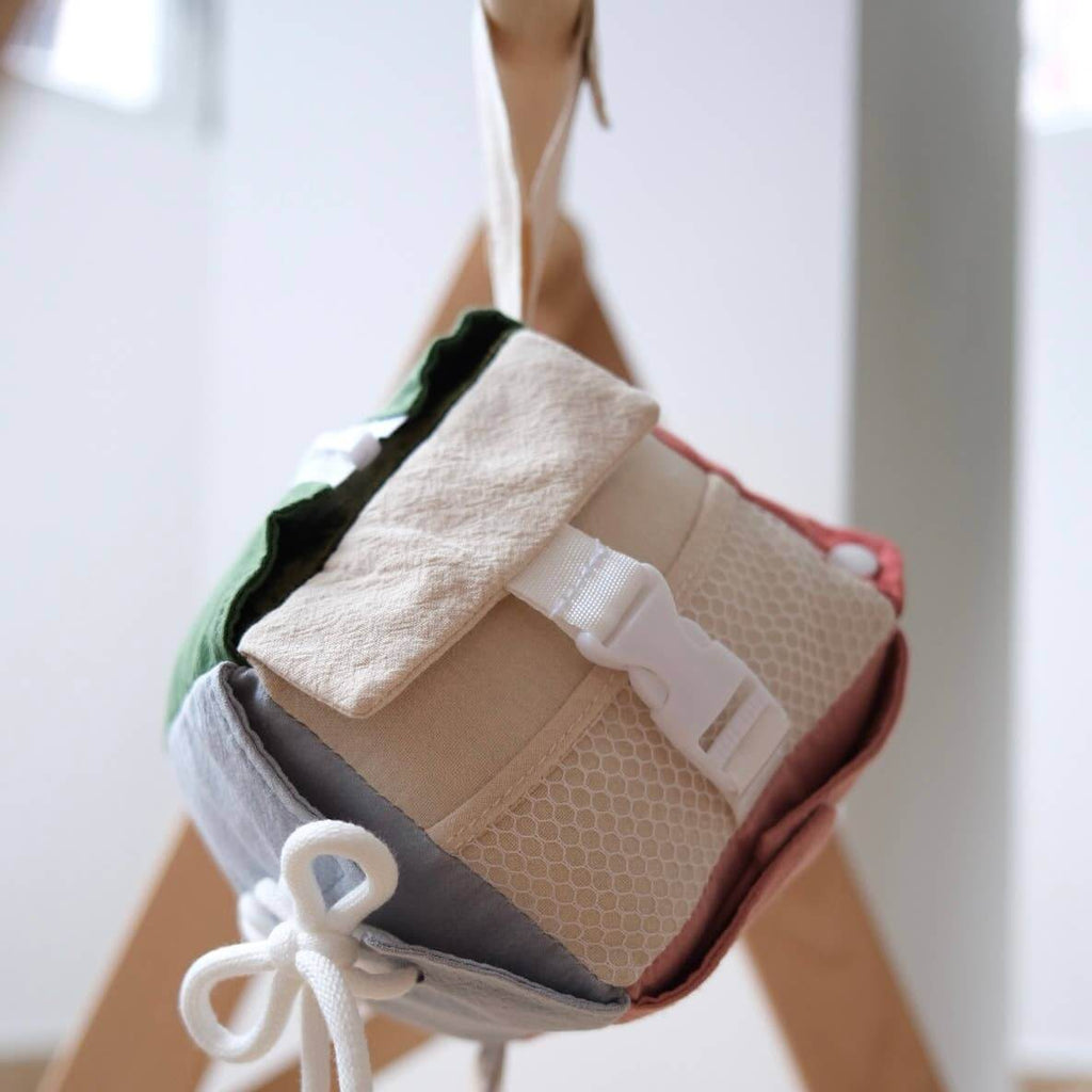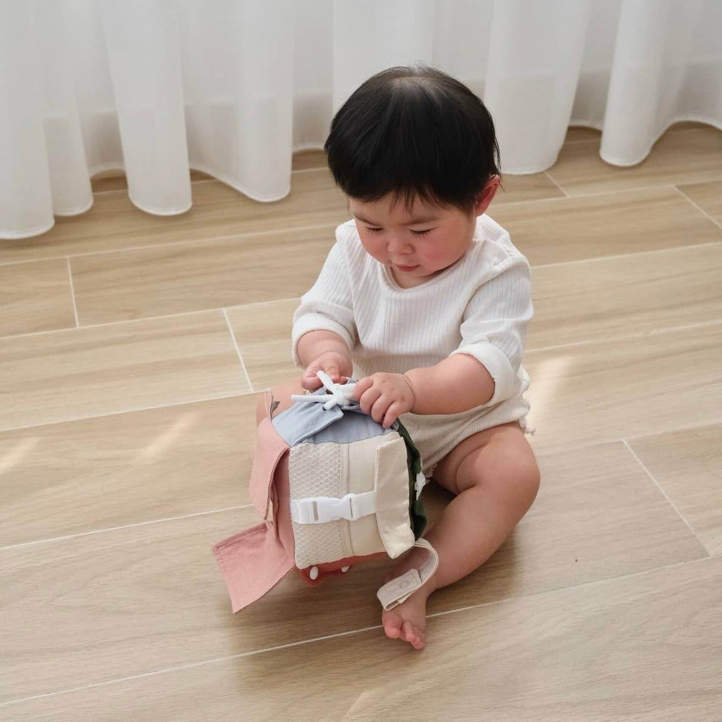 Provide our Busy Cube to your little one and let them learn 6 different essential ways of dressing themselves. Perfect to teach them to use their fingers and practical life skills!