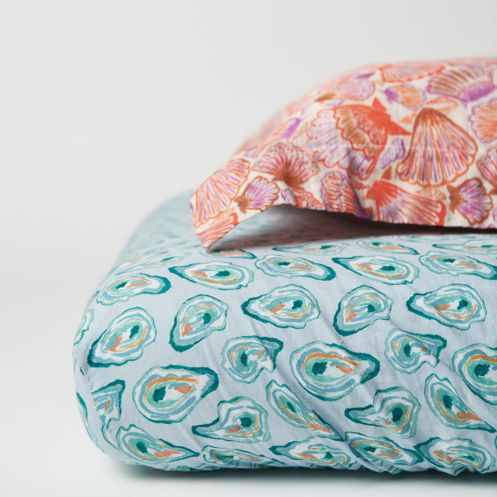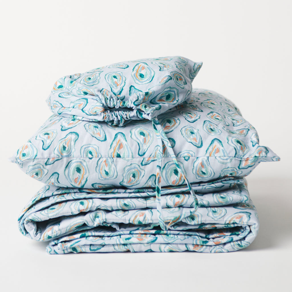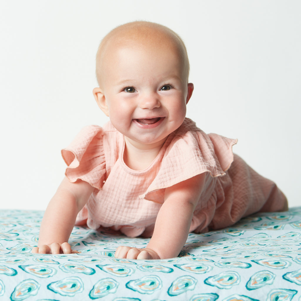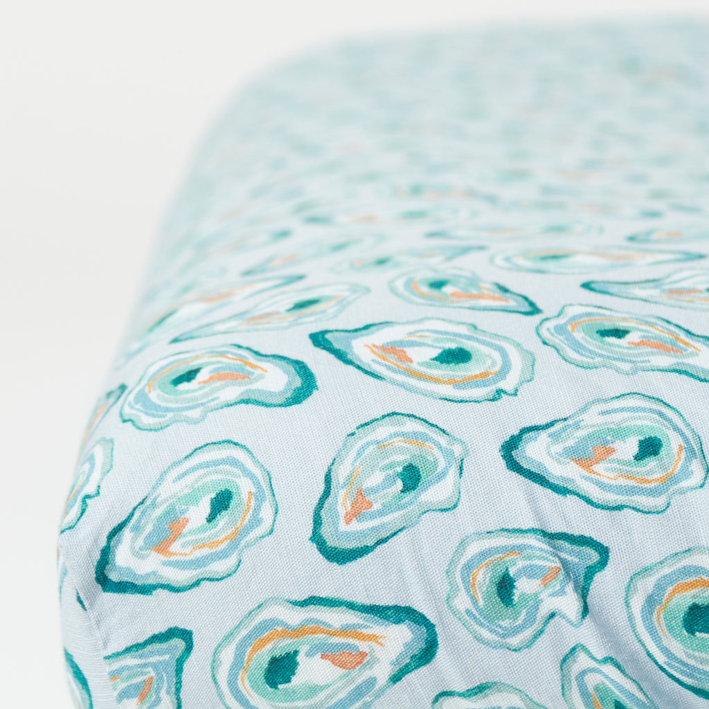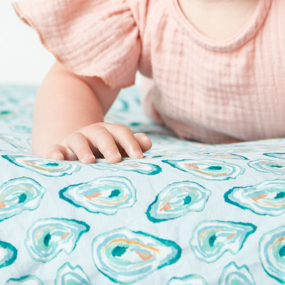 Our fitted crib sheet in our signature Oyster print is made using a 100% GOTS certified organic linen and organic cotton blend which gets softer with each use. We love linen for it's sustainability, durability, and it's luxurious relaxed feel.