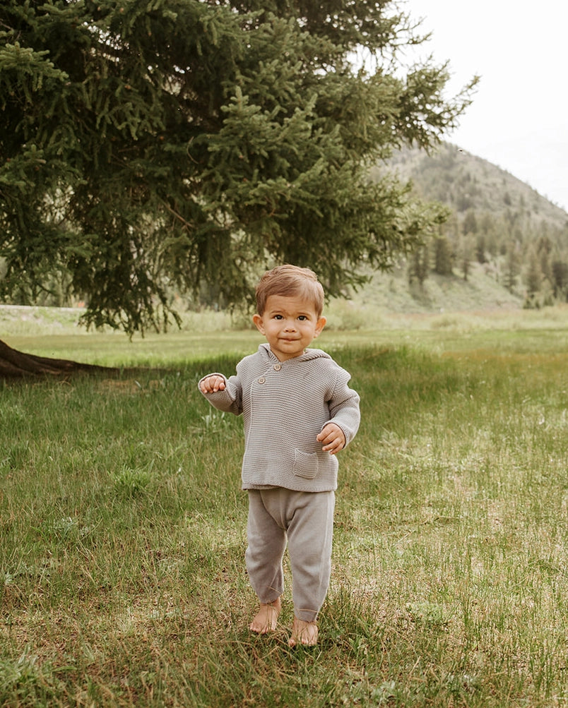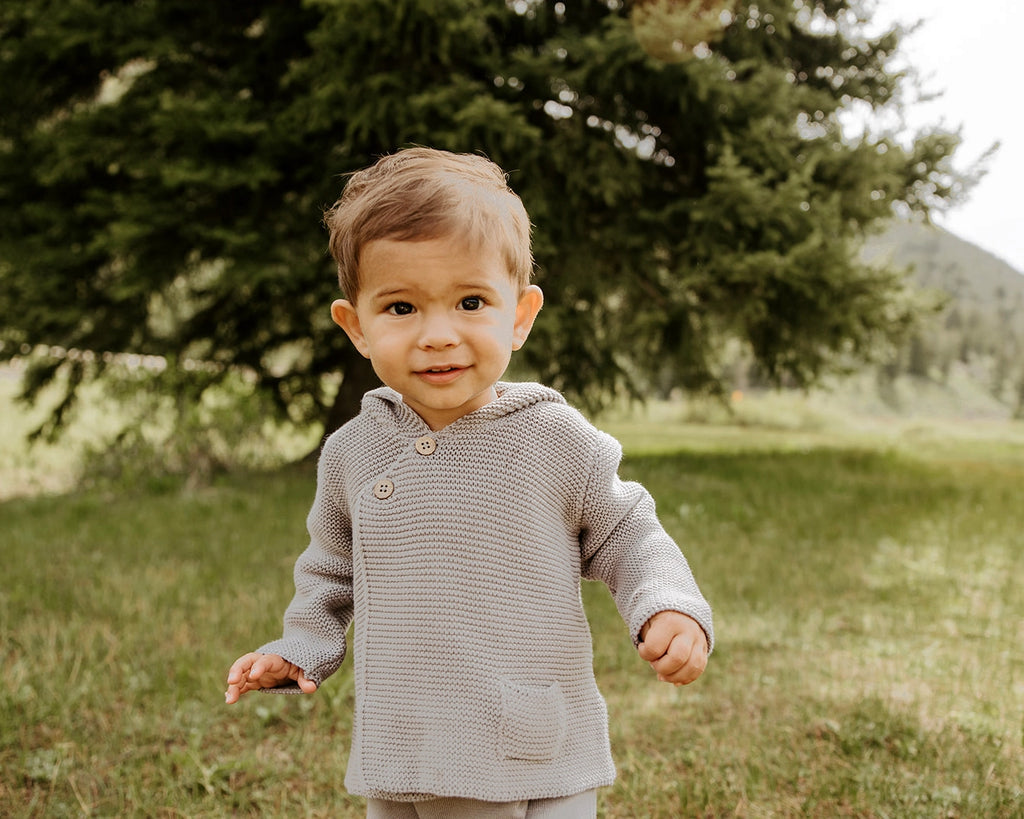 / Milan Pastel Hooded Sweater Knit Baby Jacket - Organic Cotton | Heather Grey
